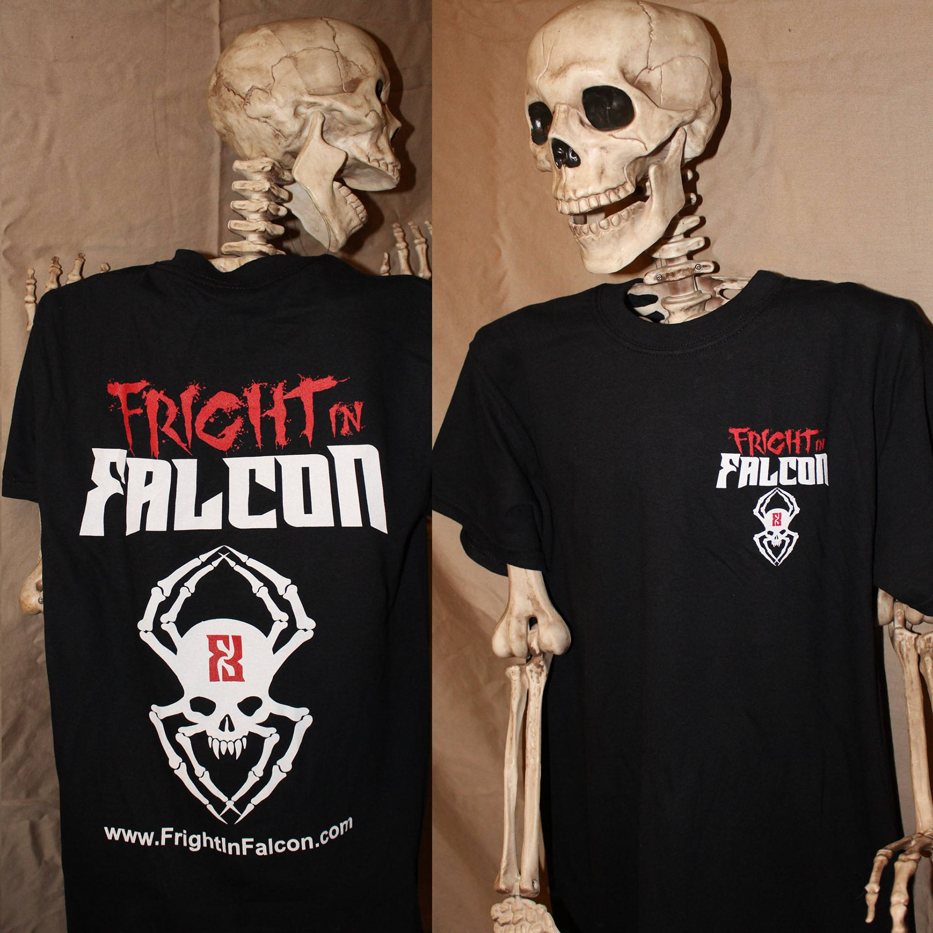 Full rendered version of logo design for client. I used the "F" from Falcon and inverted it on the DeathSpider Skull to suggest the shape of a Black Widow's Hourglass as well as to reinforce the alliteration of the "F" in both "Fright" and "Falcon."